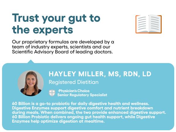 Physician's Choice Hack Your Tummy Bundle combines 60 Billion Probiotic and Digestive Enzymes for ultimate daily digestive and mealtime discomfort support.